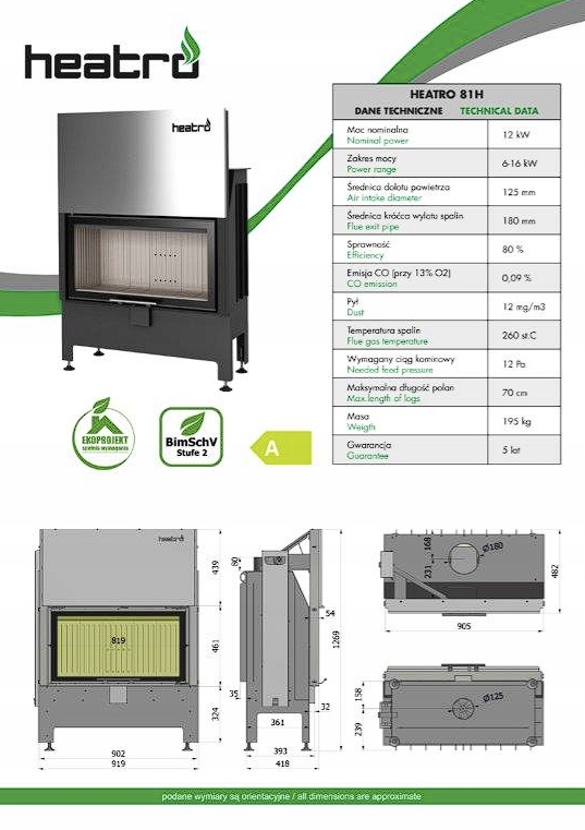 ZESTAW KOMINKOWY Wkład kominkowy Heatro 81H BLACK komplet montarzowy