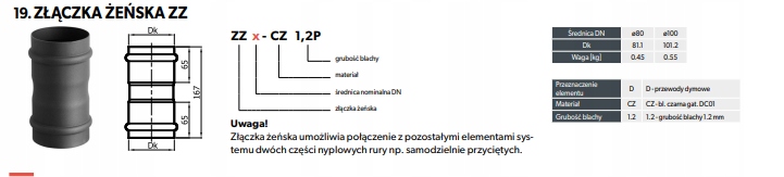 Złączka żeńska czarna fi 80mm na pelet / pellet
